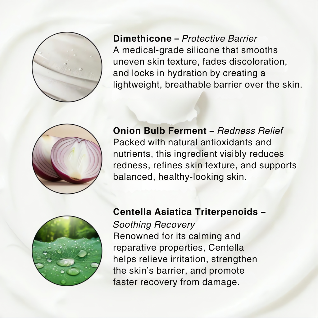 Enriched with Vitamin E, Hyaluronic Acid, and Centella Asiatica for maximum skin healing and renewal.